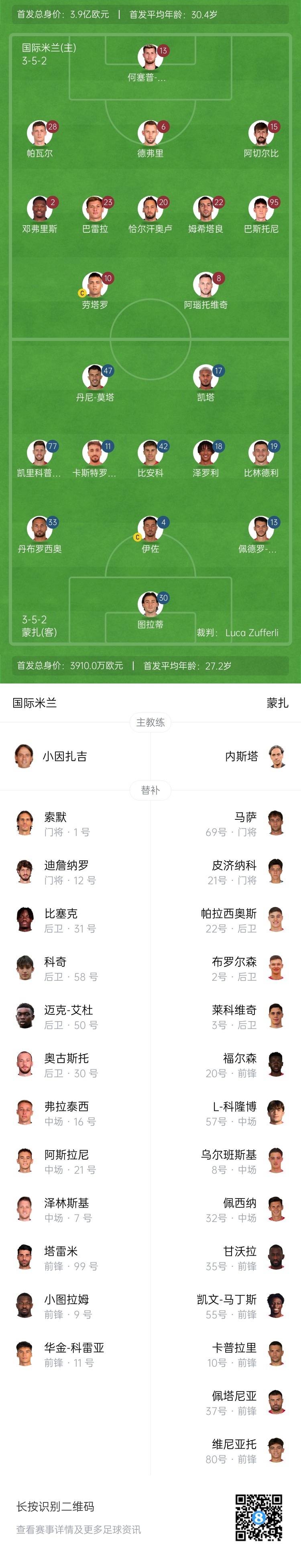 3月9日訊 意甲第28輪,國(guó)米主場(chǎng)迎戰(zhàn)蒙扎比賽即將打響。賽前首發(fā)出爐。