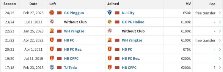 2月27日訊 根據(jù)德國(guó)轉(zhuǎn)會(huì)市場(chǎng)網(wǎng)站頁(yè)面顯示,胡人天已經(jīng)加盟中甲南京城市。