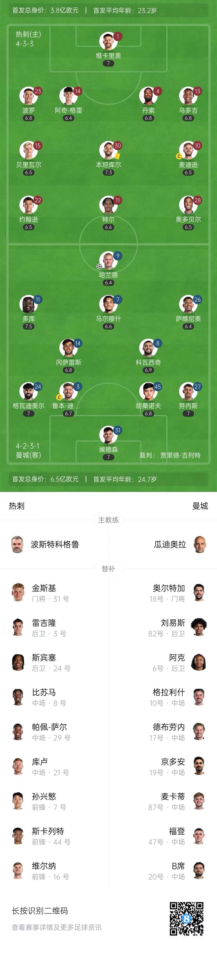 2月27日訊 北京時(shí)間2月27日3:30,英超第27輪,曼城作客新托特納姆熱刺球場(chǎng)挑戰(zhàn)熱刺。上半場(chǎng),多庫(kù)助攻哈蘭德破門,薩維尼奧門前錯(cuò)失良機(jī)。上半場(chǎng)比賽結(jié)束,曼城暫時(shí)1-0領(lǐng)先熱刺。