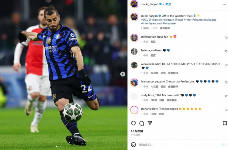 本場表現(xiàn)出色的姆希塔良曬出自己的比賽照,并表示:“晉級八強(qiáng)戰(zhàn)!”
