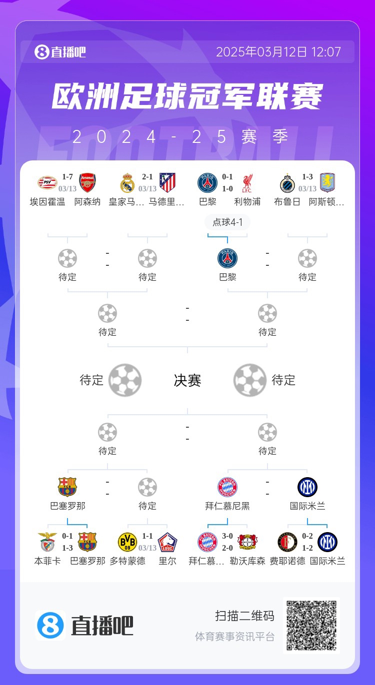 歐冠1/8決賽次回合明天再戰(zhàn),將決出最后4個晉級名額。焦點戰(zhàn)皇馬客戰(zhàn)馬競,姆巴佩、維尼修斯、小蜘蛛們會交出怎樣的成績單?
