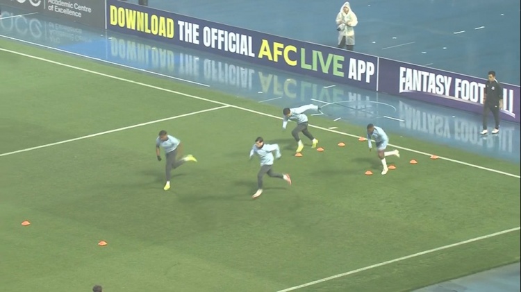 下大雨!記者:川崎主場(chǎng)草皮質(zhì)量相當(dāng)可以,這么大雨一點(diǎn)積水也沒(méi)