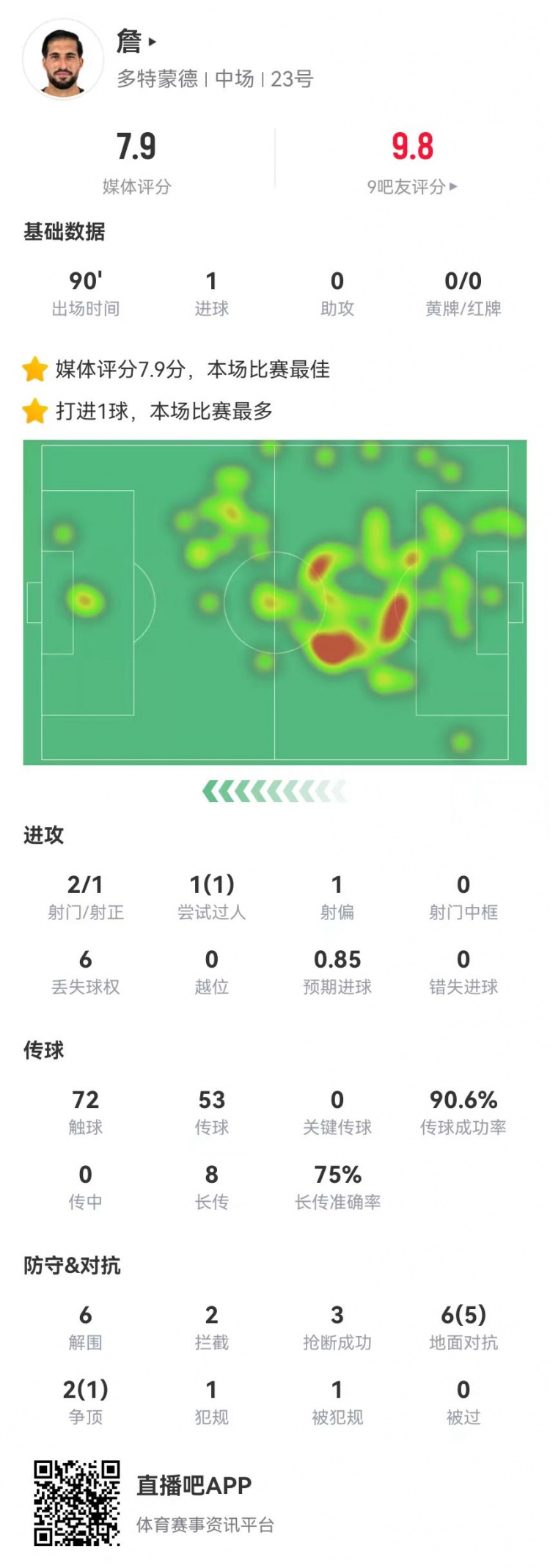 官方:埃姆雷-詹當(dāng)選全場最佳,點射扳平+6解圍2攔截3搶斷
