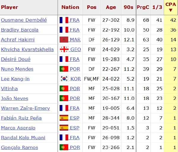 從統(tǒng)計數(shù)據(jù)可以看到,本賽季登貝萊在法甲聯(lián)賽預期進球是14.2個,但他實際進球高達20個,是隊內射門效率最高的球員。